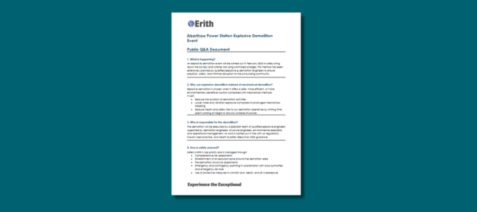 Frequently asked questions answered by Erith regarding the controlled explosive demolition happening at Aberthaw.
